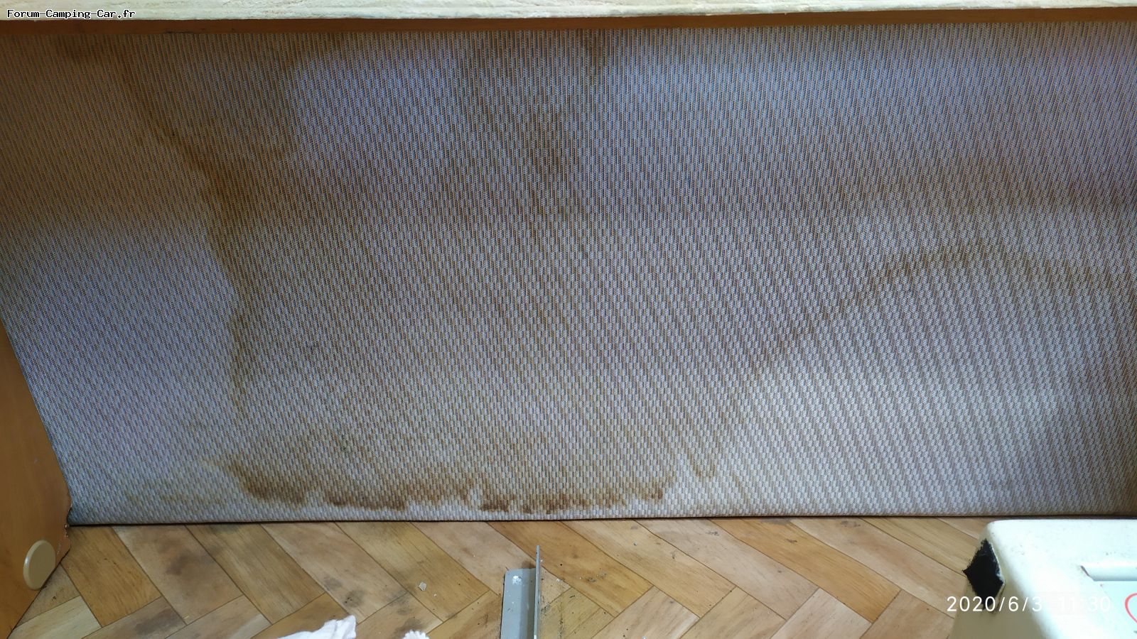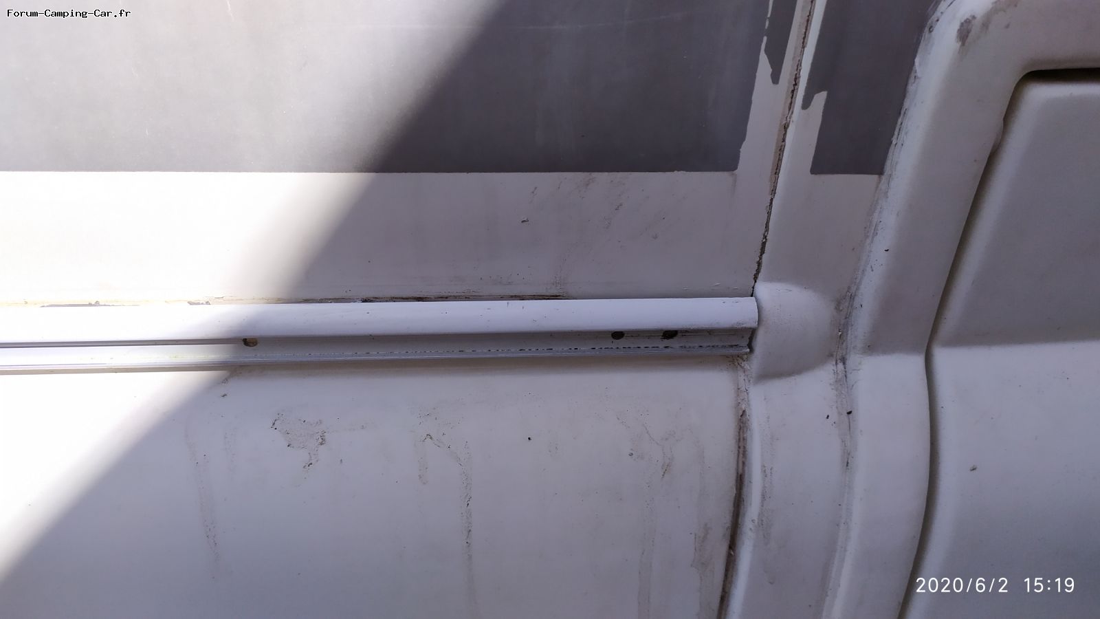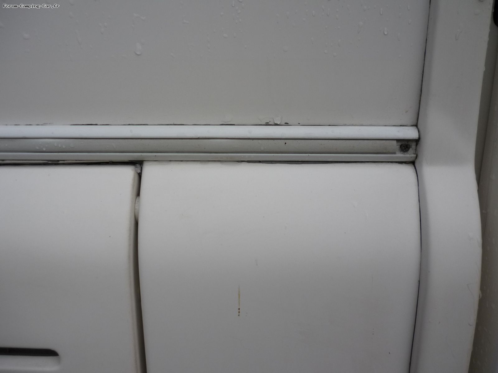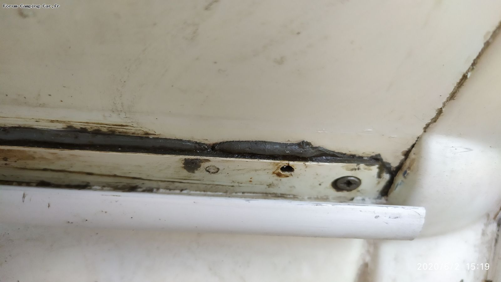 À mon avis, la fixation de cette bande est également une raison du problème. L'eau pénètre dans le camping-car à travers les vis.