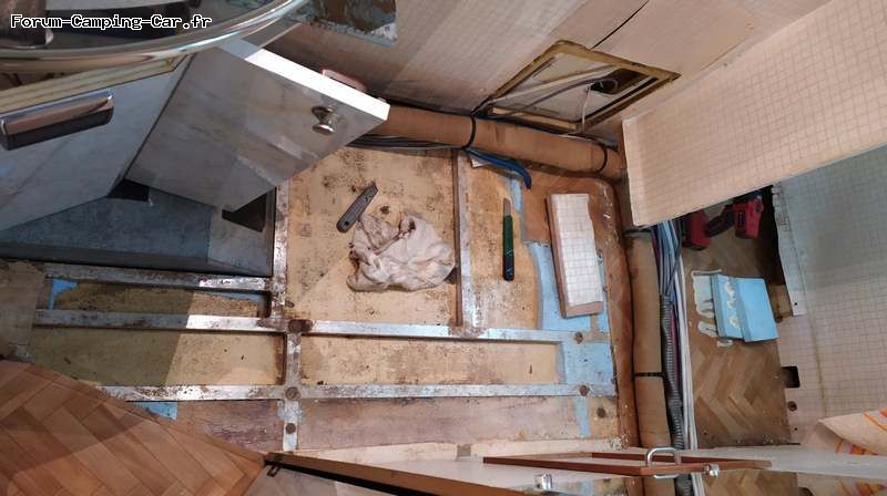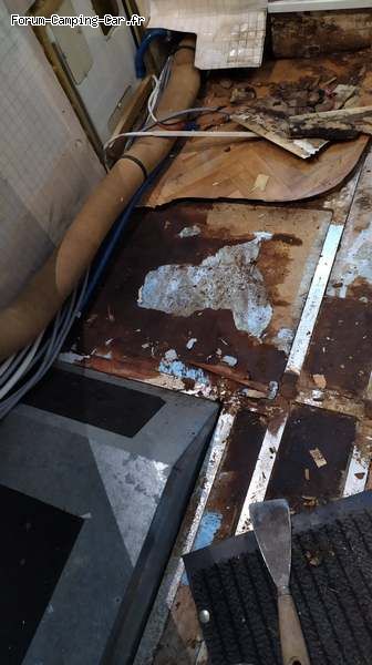 Le vendeur a affirmé que le camping-car était resté deux ans dans le sud de la France, que la fenêtre de la salle de bain était ouverte et que l'eau avait inondé la salle de bain et que le sol avait été détruit. Je n'y croyais pas. Mais cela n'avait pas d'importance à l'époque.