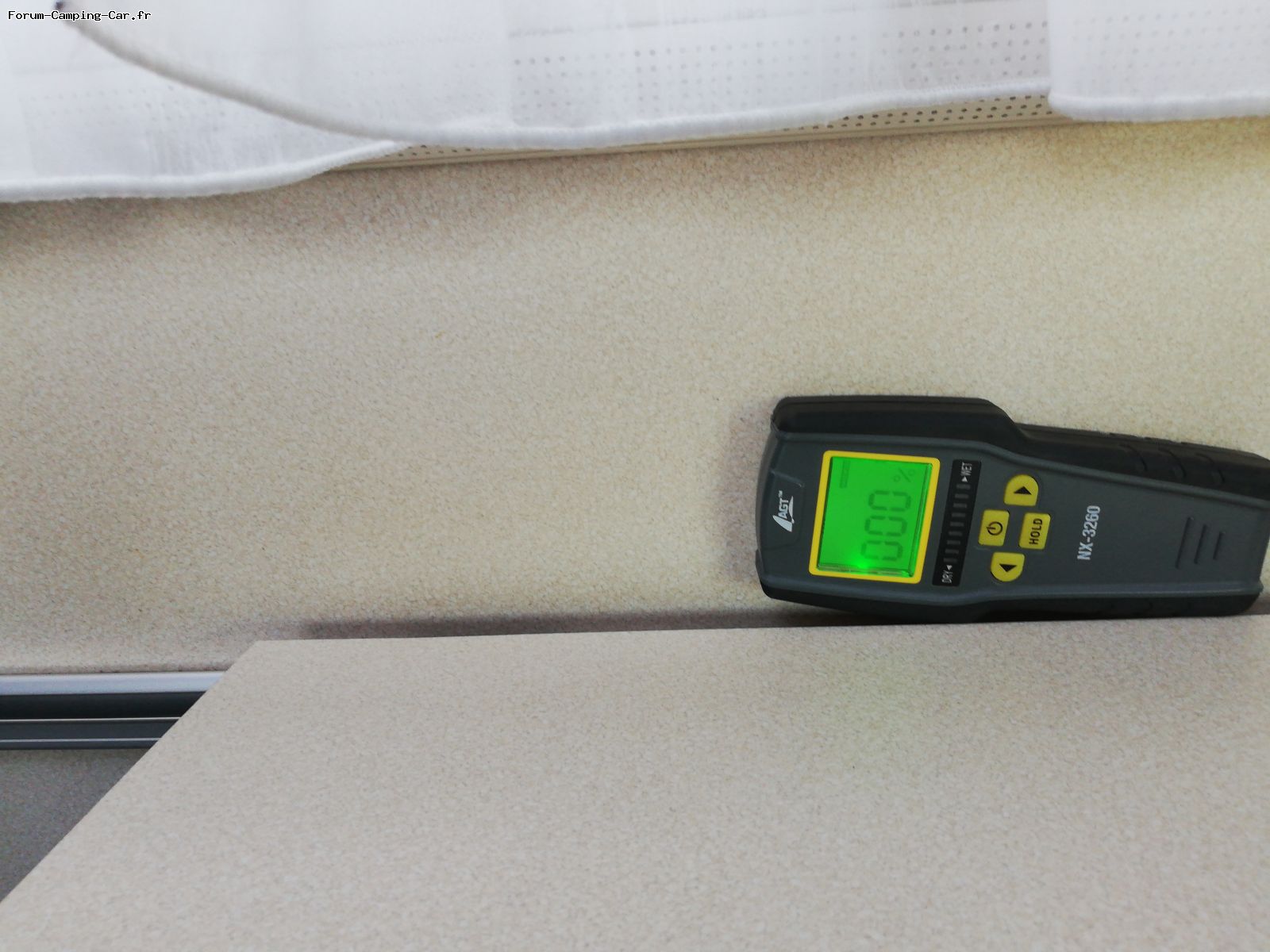 A votre place, j'installerais un petit radiateur soufflant dans le camping-car en le laissant ouvert pendant 24 heures et je reprendrais le taux d'humidité.