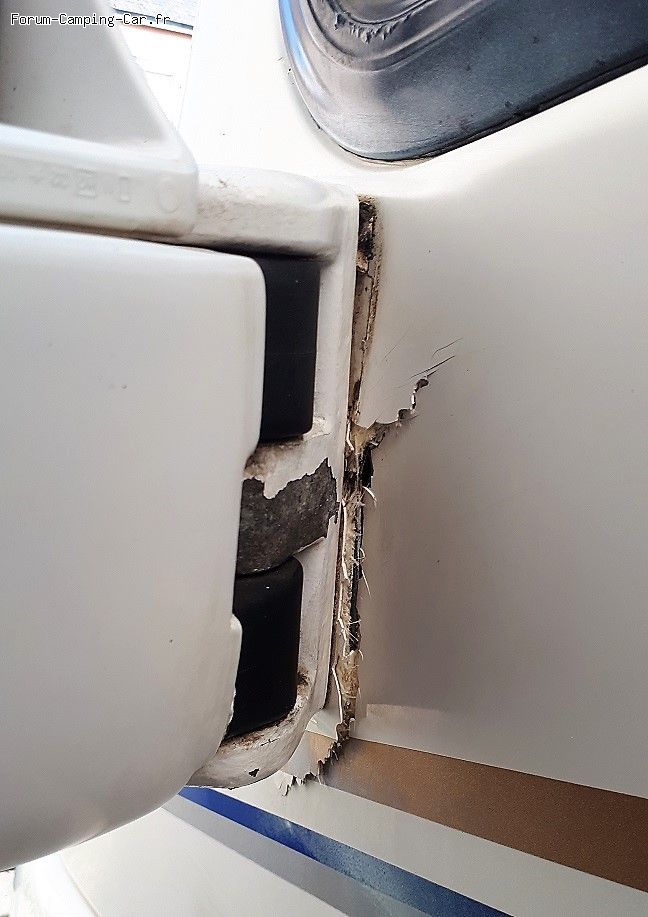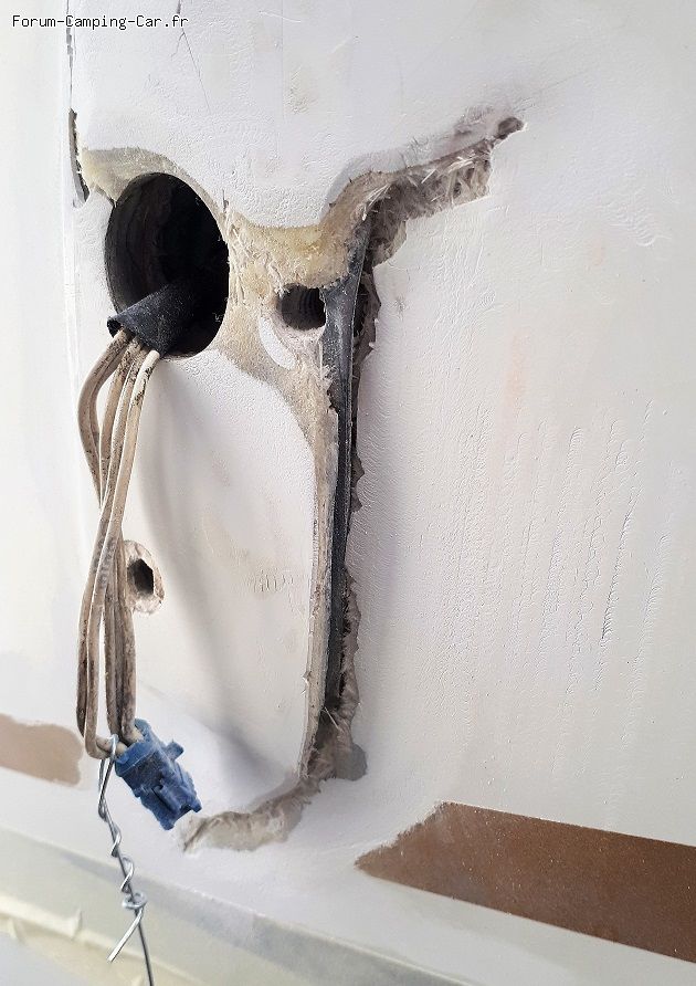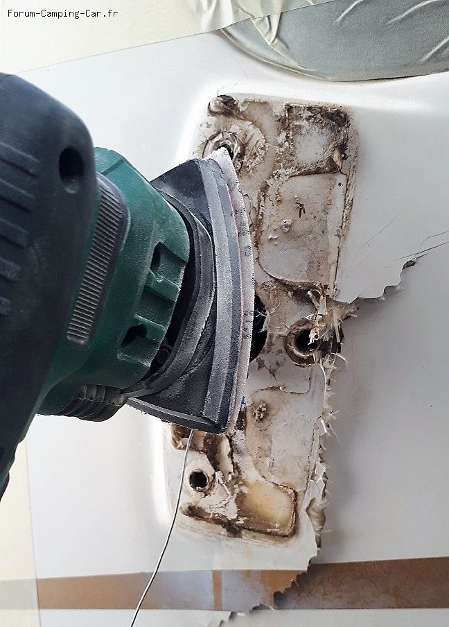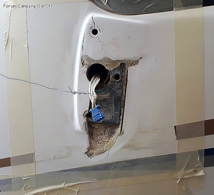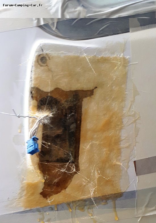 Comme vous pouvez le voir la glace a été cassée, la plaque métallique noyée dans le polyester est a moitié arrachée.