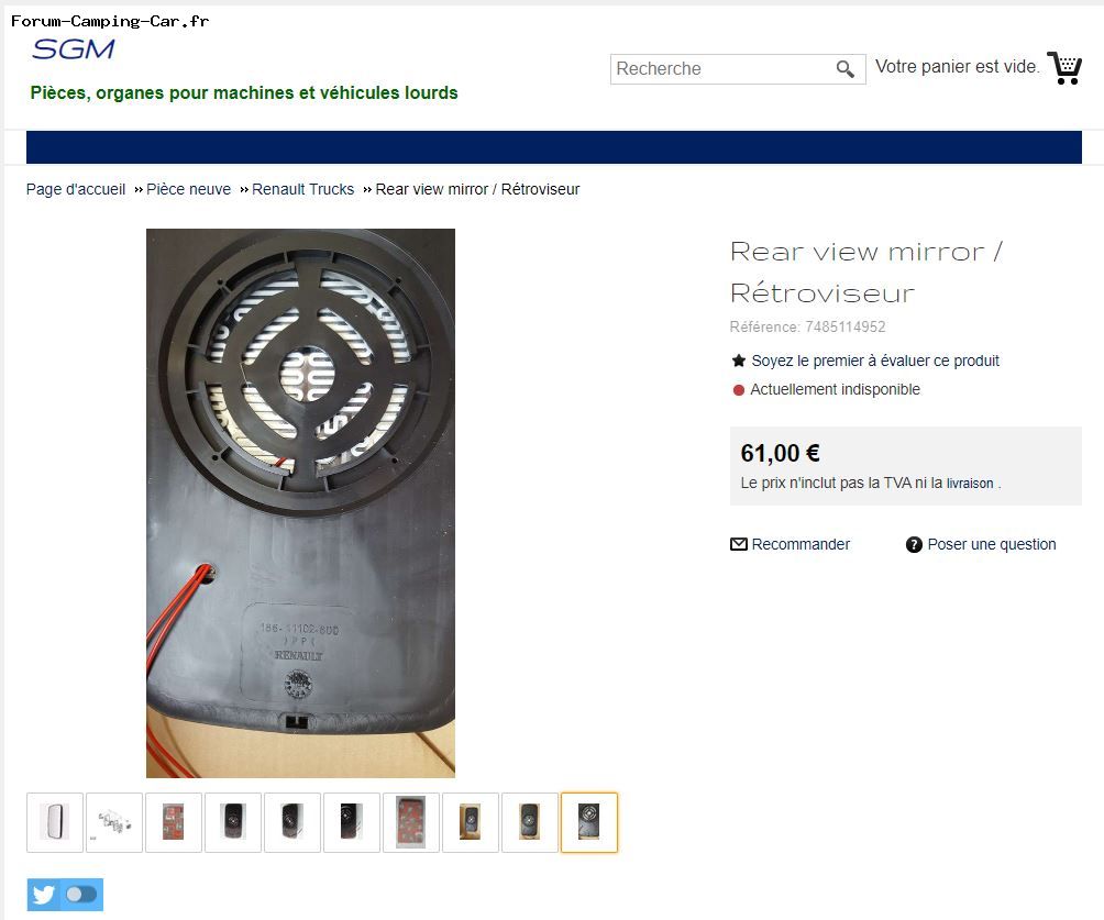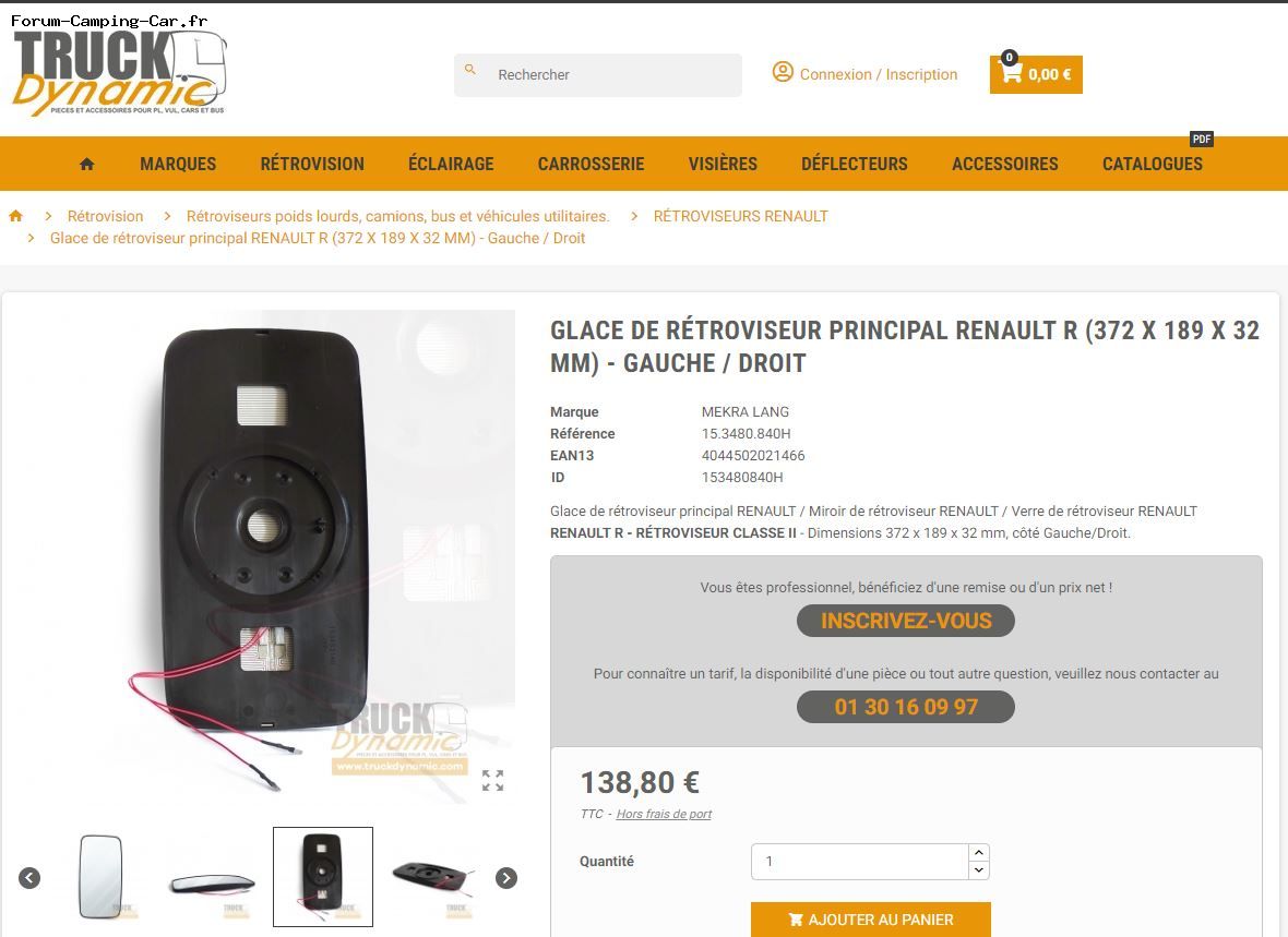 Grâce à tes informations, j'ai réussi à commander uniquement le miroir. Référence 6.75103 chez Renault truck. J'espère que ça ne va pas être trop compliqué à remplacer.