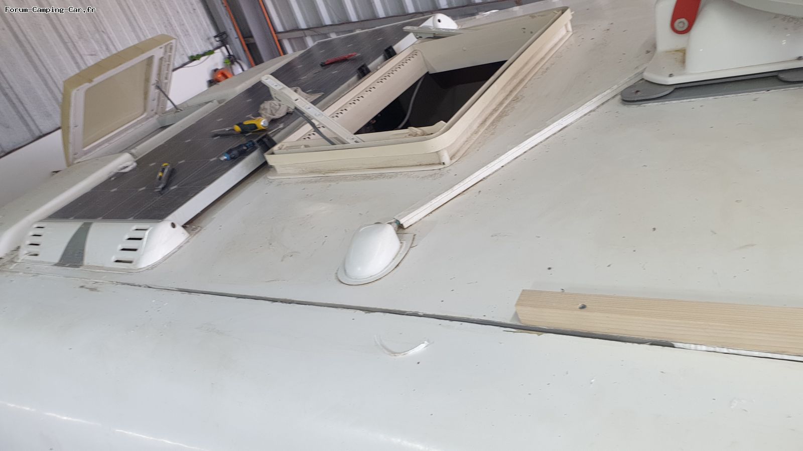 Pour ma part la fuite provenait probablement de la jonction entre le toit et les panneaux laterales. J'ai fait refaire tous ces joints au "cola veda" ainsi que les lanterneaux au butyl.