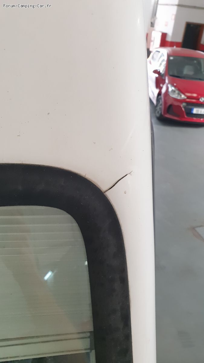Cela fait 2 mois que j'ai ce cc et n'avais pas vu. En regardant les photos passées, cela était deja là lors de l'achat. Bizarrement, et par chance, cela n'engendre pas d'infiltrations d'eau, ou plutôt cela coule ailleurs que dans la cellule.