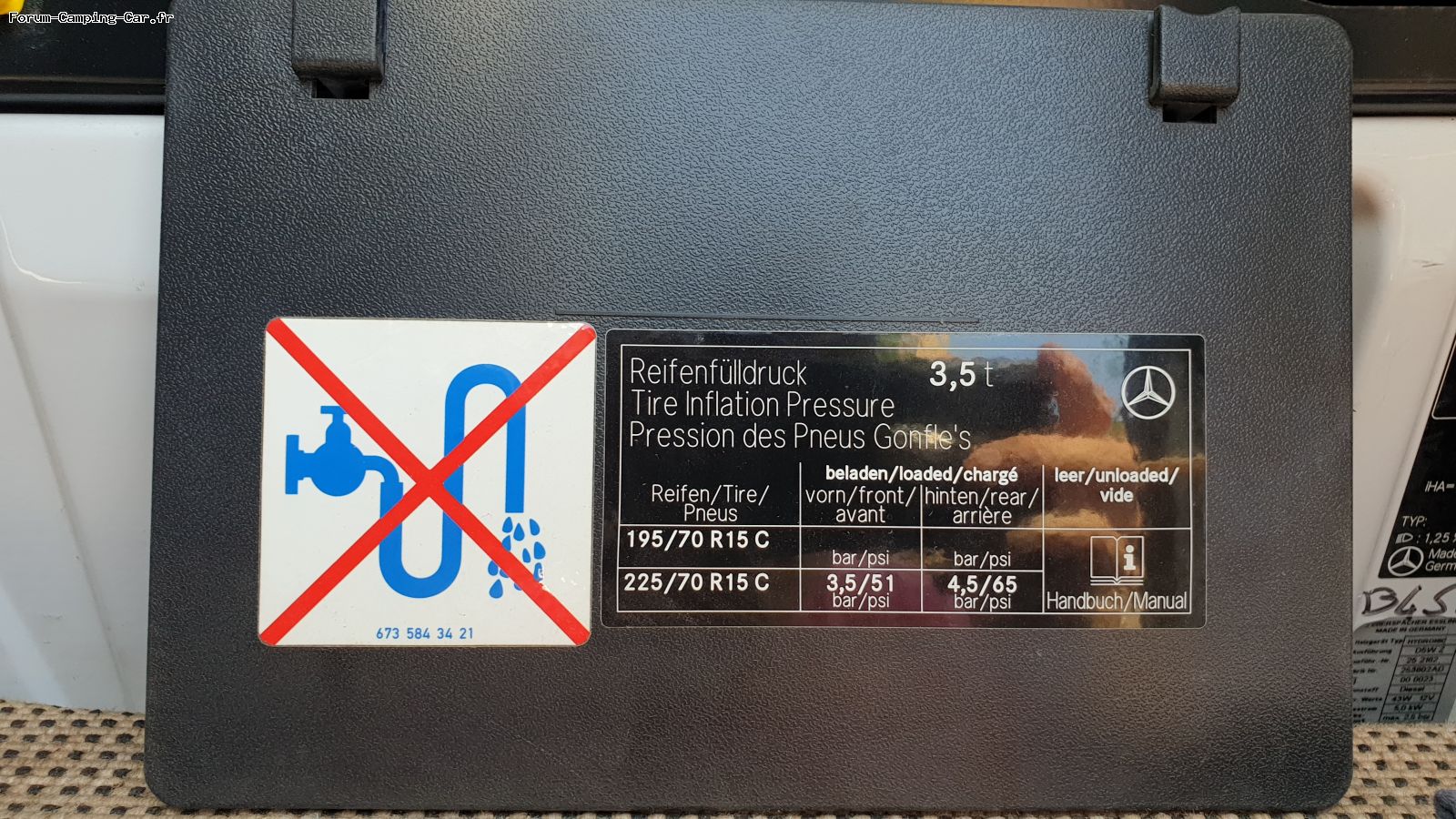 Pression des pneus: la pression constructeur suppose des pneus camionnette. Tes pneus sont probablement des pneus Michelin Agilis Camping qui supportent plus de 5 bars, ce qui leur permet de supporter les périodes de non roulage sans se déformer.