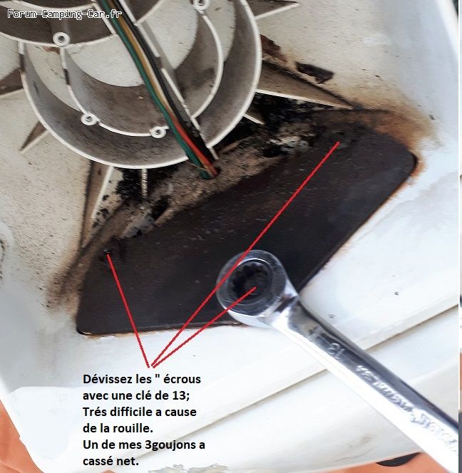 Vous pouvez voir sur la photo les restes des [u][b]écrous[/b][/u] retirés que l'on visse sur les gougeons qui eux sont solidaires du bloc rétro.