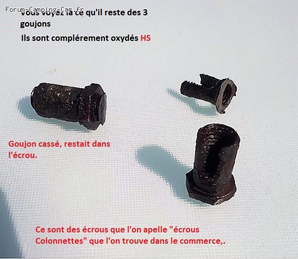 Vous constatez l'état d'oxydations de ces écrous, ainsi que celui dans lequel il y a le morceau du gougeons cassé.